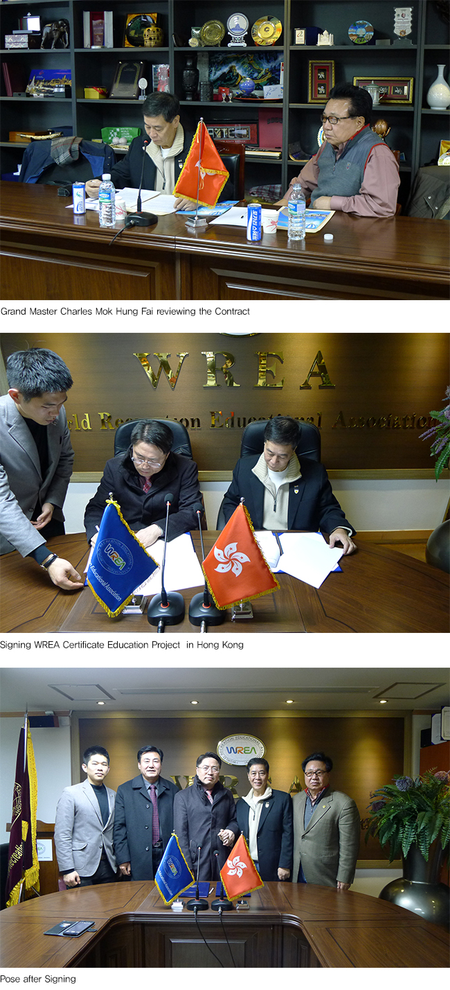 <span style="font-size: 10pt; font-family: Arial"><strong>Signing WREA Education Project between Hong Kong Taekwondo Self-Defense Academy and REC, Appointment of International Advisor(2014, 12/06)</strong></span>