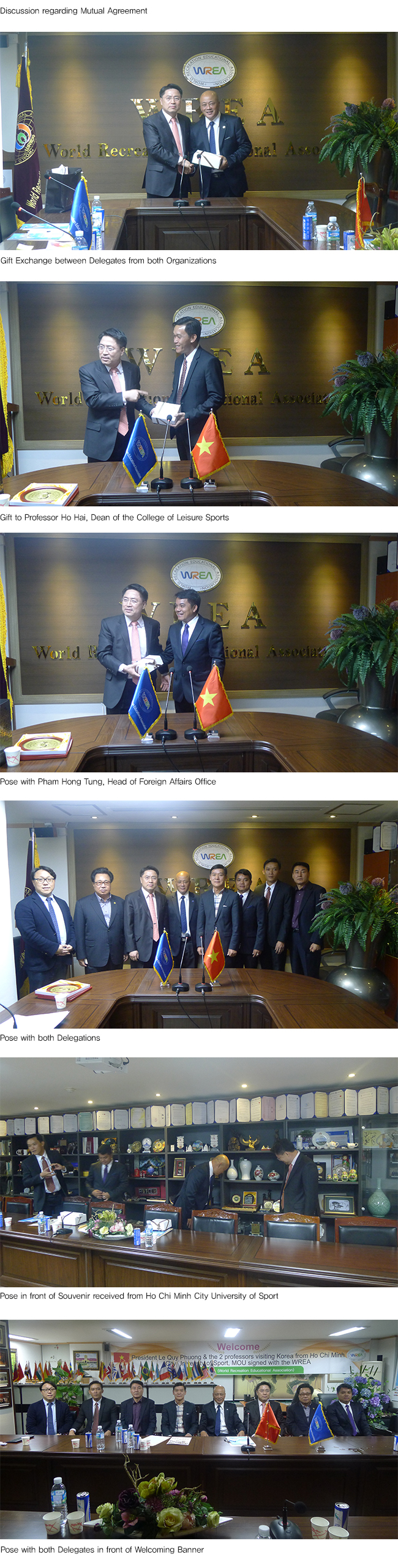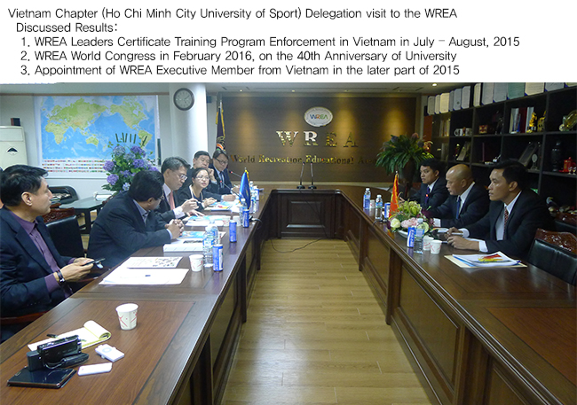 Vietnam Chapter (Ho Chi Minh City University of Sport) Delegation visi… WREA 0 45130 2014.10.31 18:46 Vietnam Chapter (Ho Chi Minh City University of Sport) Delegation visit to the WREA(2014, 10/24~10/26)