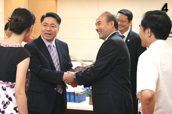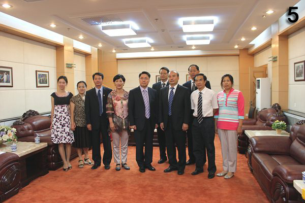 (President Young-kee Lee, President and Party Secretary Lee HongGang, Vice president Wang Pu, Head of the Theory College Gwack GeumSil, Dean of the Leisure-Sports-Department Lee SangYeou)